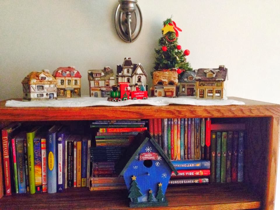 This is my Christmas village. It's not very exciting, but it's mine. My friend gave me the Victorian house in the middle, and I love it.
